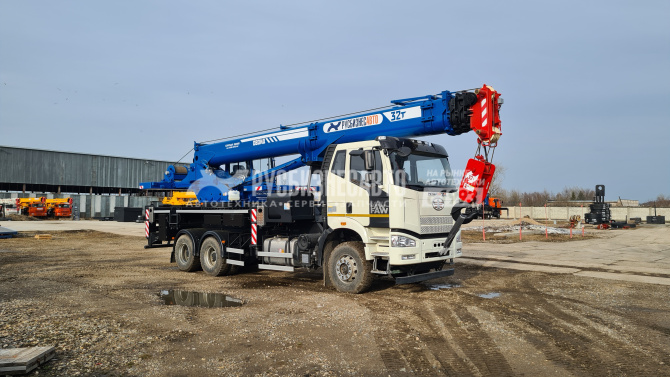 Грузоподъемность 32т, шасси FAW-3250 (6х4), стрела 31 м., с противовесом 1,0 т и 1,5 т, гарантия на кран 18 месяцев или 1000 м/ч