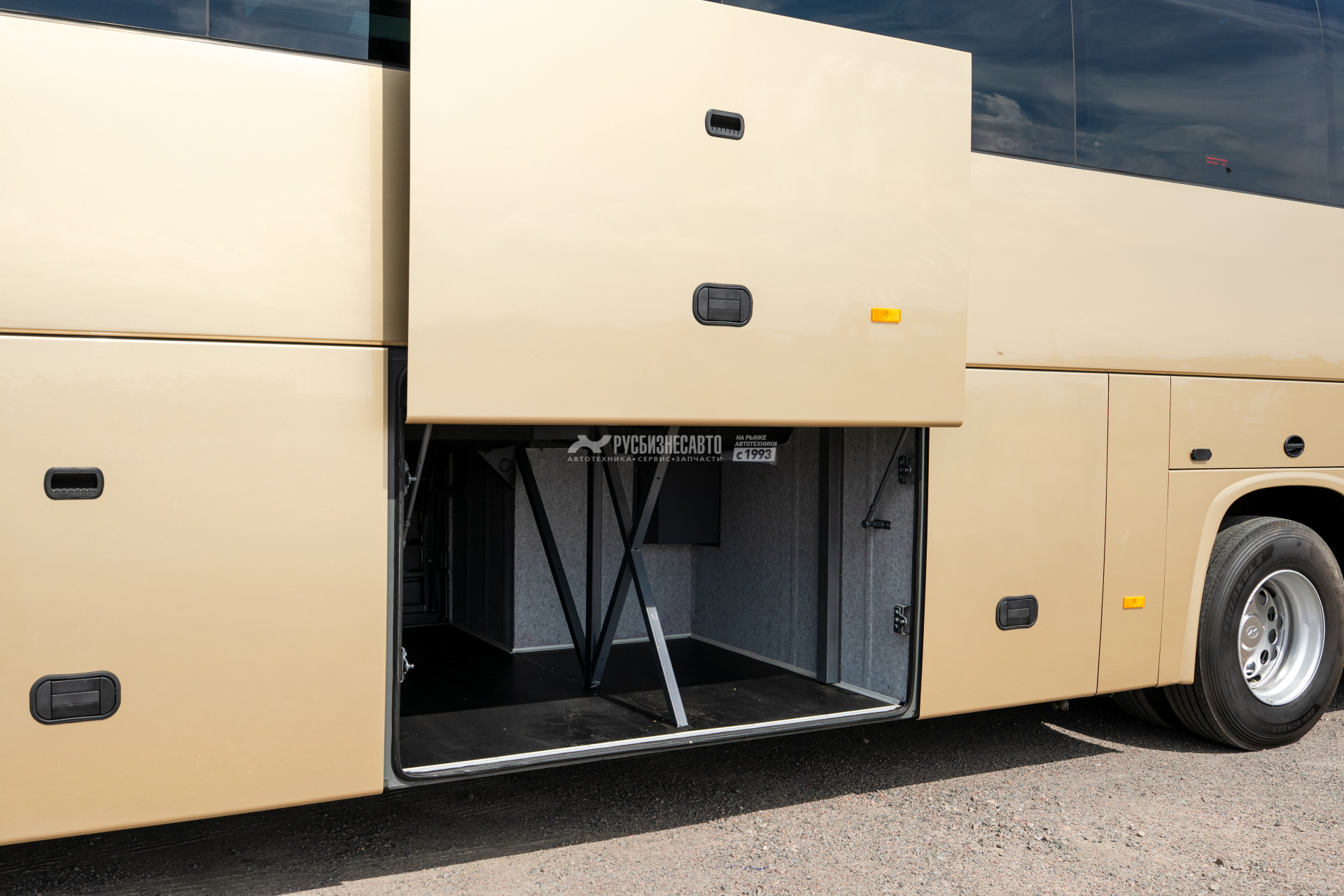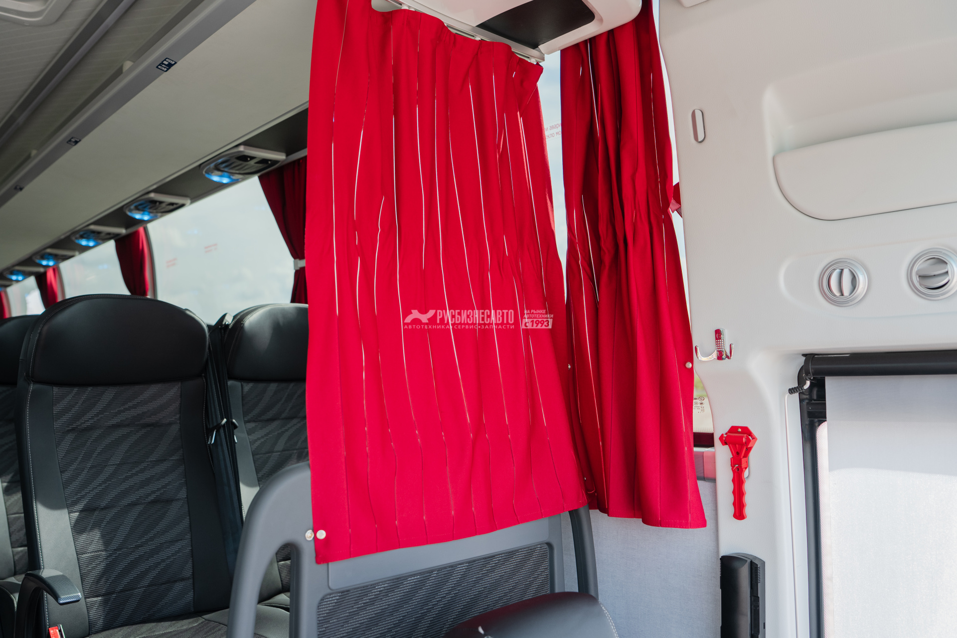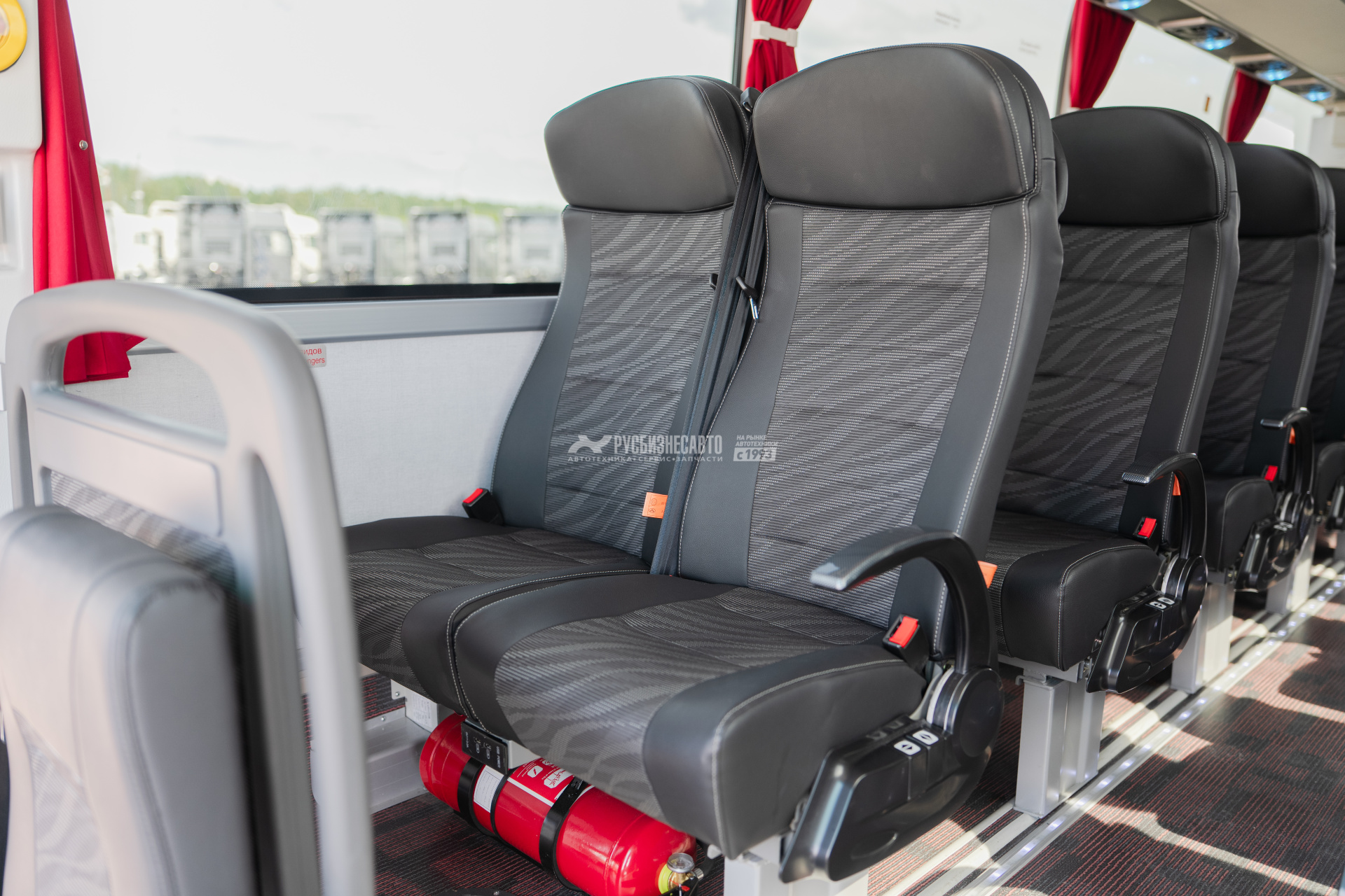 Стандартная комплектация: - Климат-контроль - ПЖД - Место гида - 2 TV - USB для каждого пассажира - Регулируемые подголовники по высоте - 2х или 3х точечные ремни безопасности пассажиров - ЭРА-Глонасс - Автоматическая система пожаротушения - Защита  ДВС - Видеосистема второй двери и заднего хода - Аудио система - Электронные часы - Индивидуальные панель вентиляции и лампы для каждого пассажира - Металлические декоративные колпаки колес - Пульт дистанционного открывания дверей - Обогрев зеркал заднего вида с электрорегулировкой - Набор инструмента с домкратом - Тонированный стеклопакет - Солнцезащитная шторка водителя - Солнцезащитные шторки боковых и заднего окон - Звуковой сигнал заднего хода