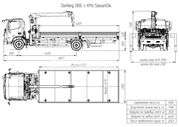 КМУ DONGFENG C80L + SOOSAN SCS334 нижн. упр. + борт алюминий 6200*2550*400мм. + доп.опоры РКТ