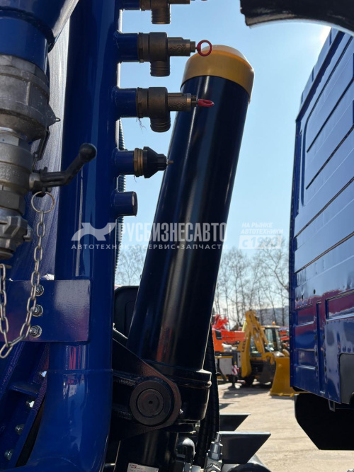 – Выгрузка цистерны осуществляется с помощью гидравлического цилиндра, расположенного в передней части цистерны (за кабиной шасси) либо с помощью создания в цистерне избыточного давления 0,5Bar, либо используя гидросмыв осадка. Гидавлический цилиндр оснащен гидрозамком для предотвращения случайного опускания под действием силы тяжести в случае отказа гидравлики.