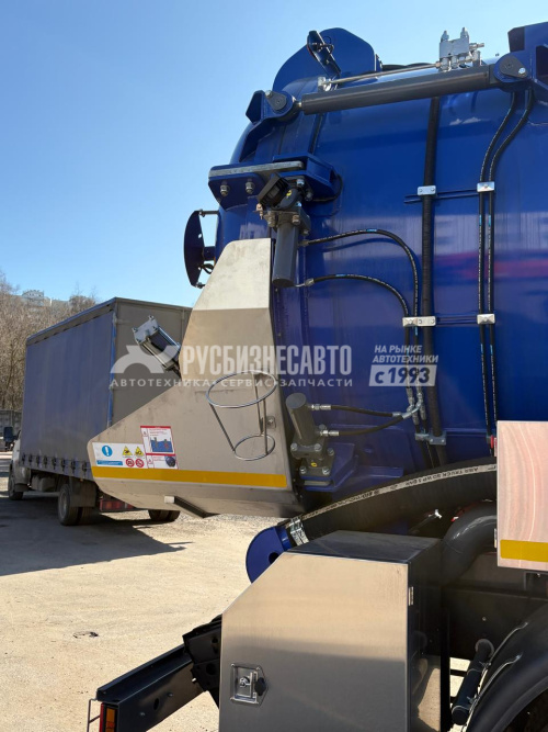 – Задняя крышка цистерны открывается с помощью 2 гидроцилиндров. Гидроцилиндры оснащены гидрозамками для предотвращения случайного опускания под действием силы тяжести в случае отказа гидравлики.