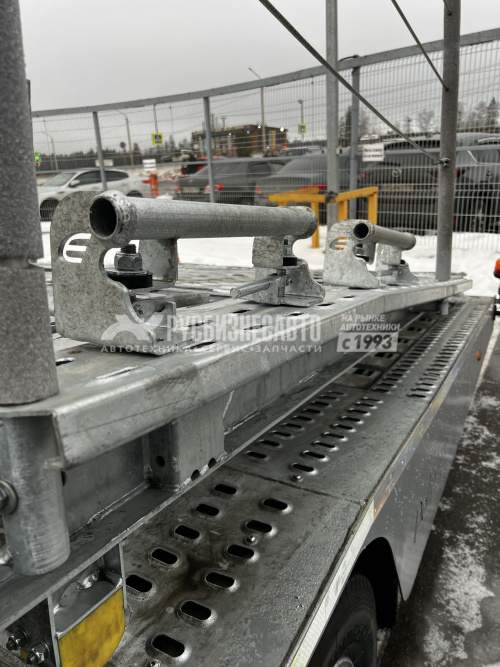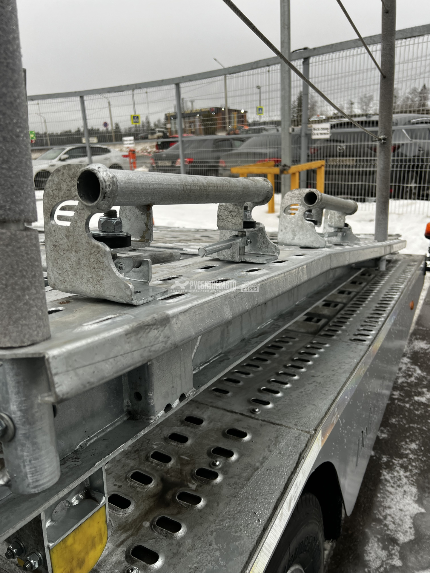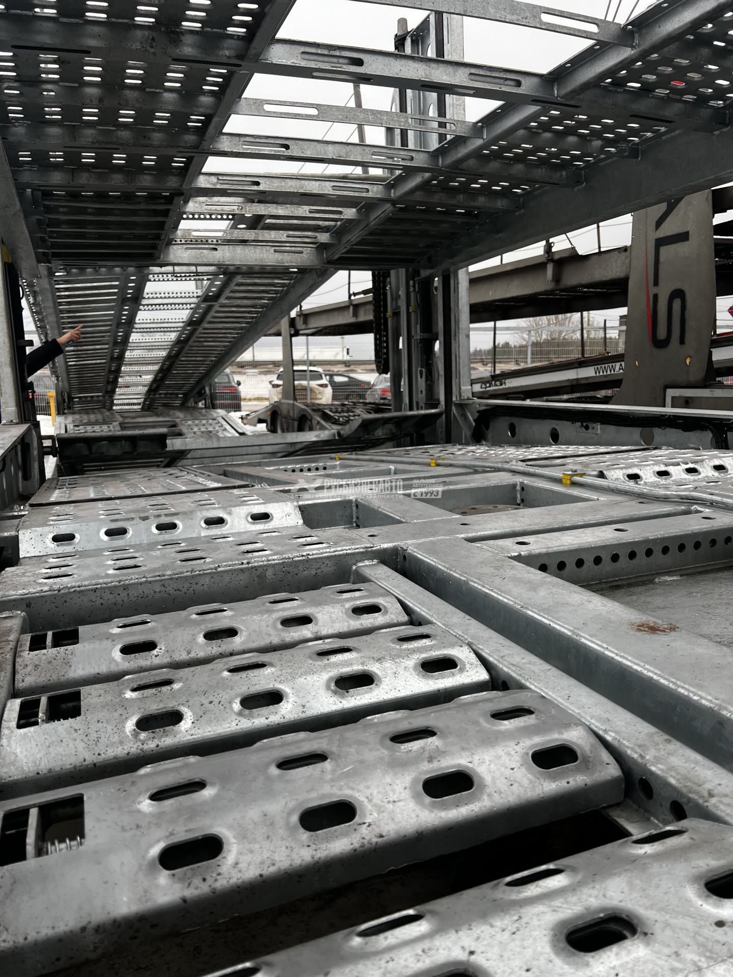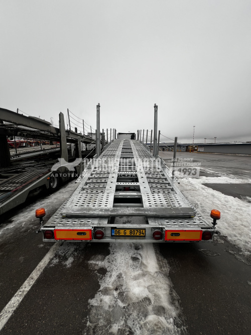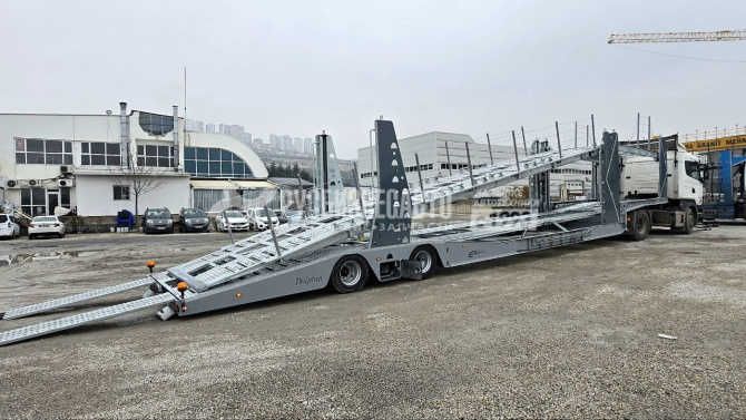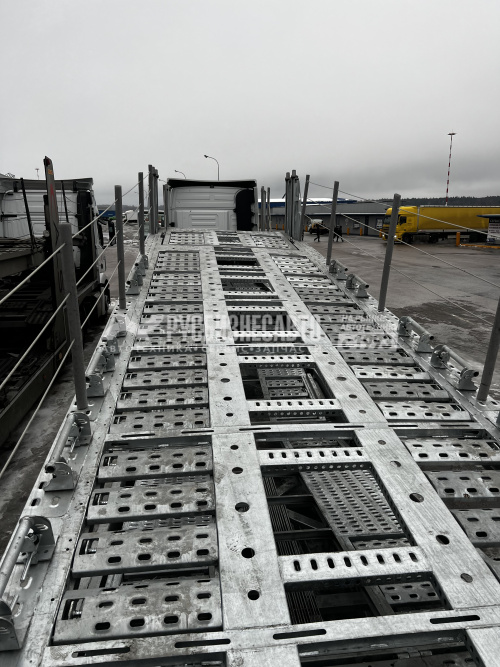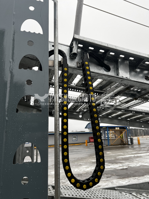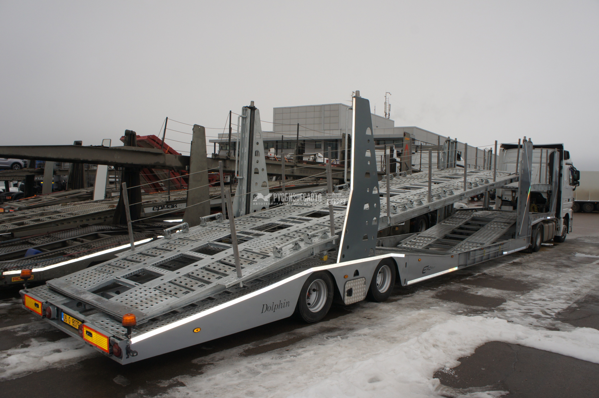 Полуприцеп автовоз двухярусный на 8 автомобилей, под ССУ тягача 1050 мм, 2 оси SAF (11 тон каждая), нижний ярус 4 автомобиля, верхний ярус 4 автомобиля, габаритная длина полуприцепа 17 100 мм, ширина внутри 2240 мм, масса собственная - 11 200 кг, г/п 24 800 кг, Гидромоторы шпинделей с приводом от гидрофикации тягача, требования к тягачу : Высота ССУ 1050 мм, нагрузка на ССУ 14000 кг, задний радиус обметания не более 1890 мм.