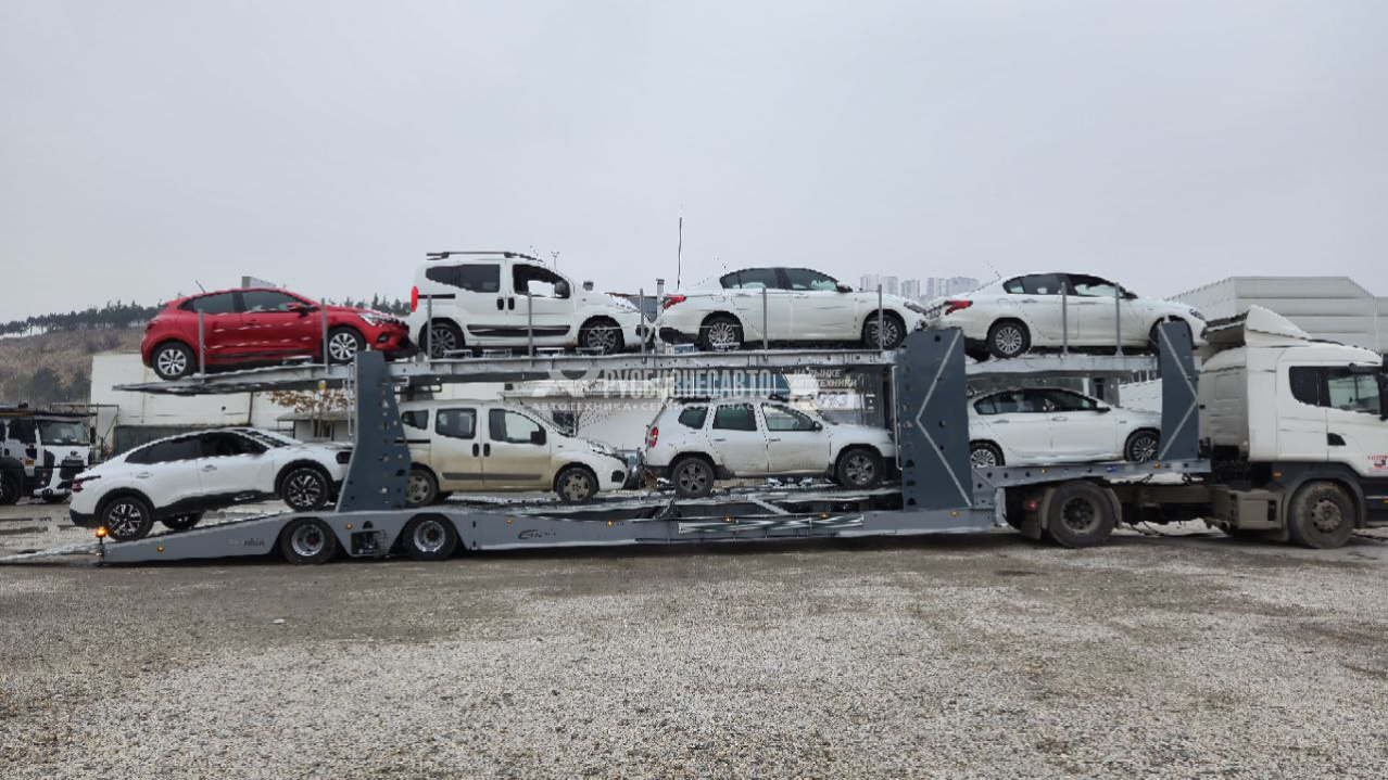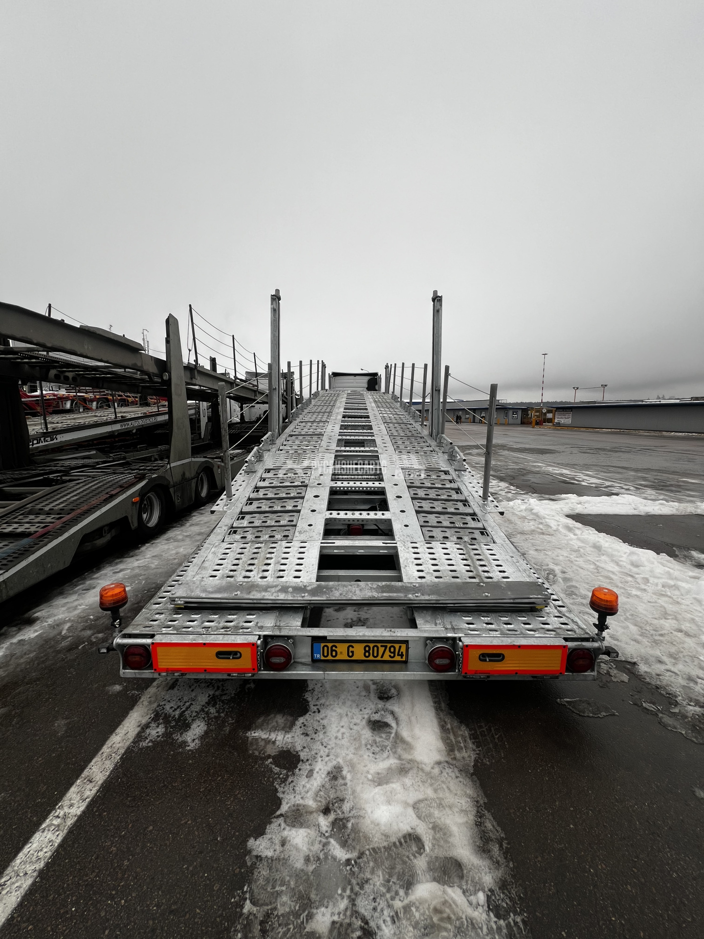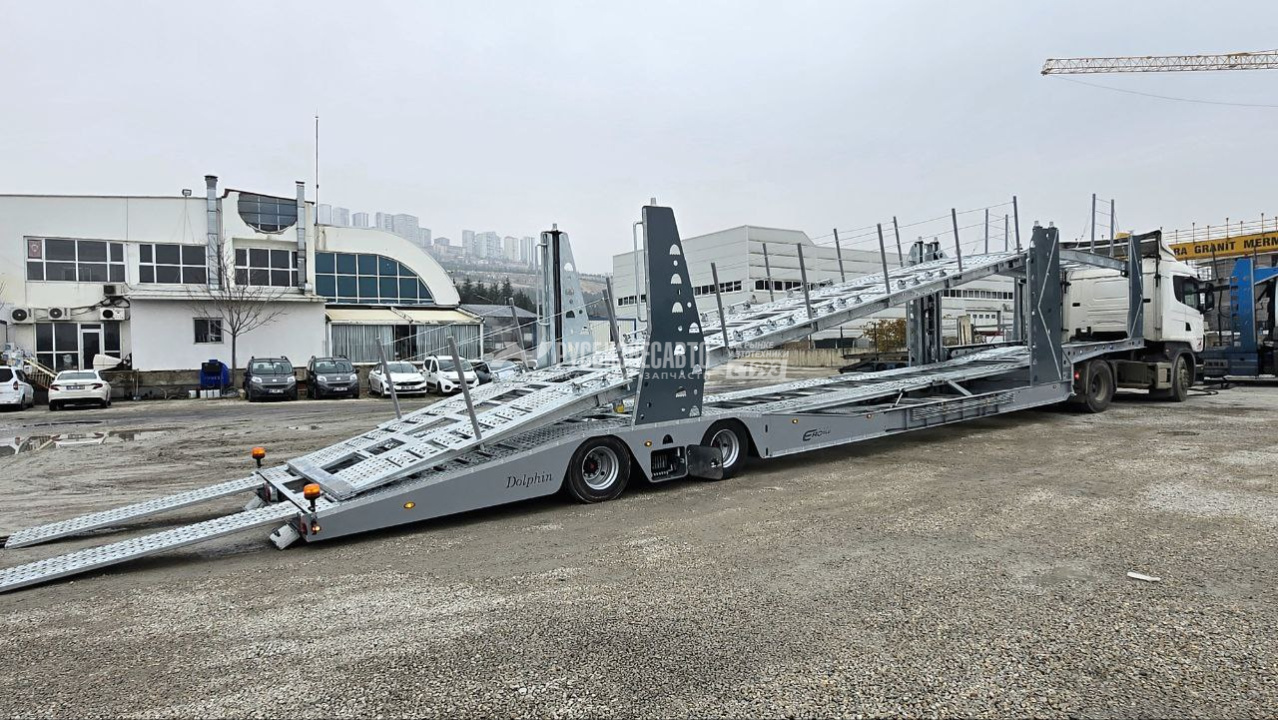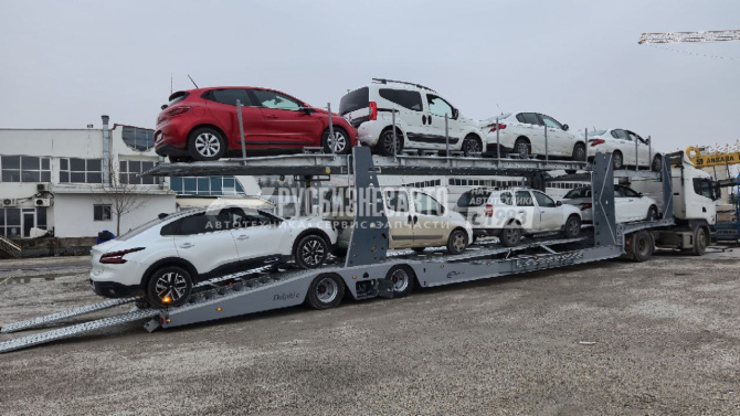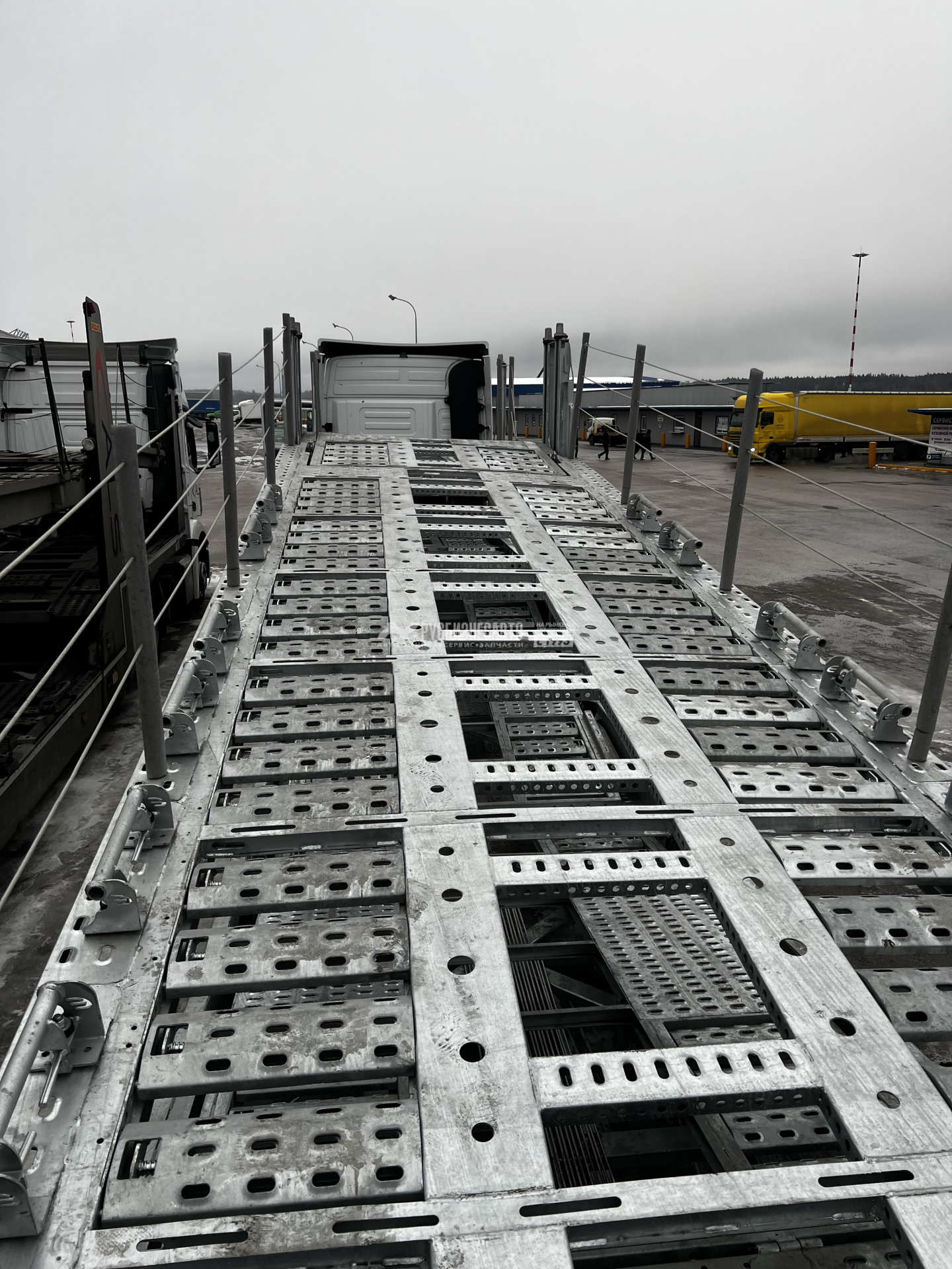 Полуприцеп автовоз двухярусный на 8 автомобилей, под ССУ тягача 1050 мм, 2 оси SAF (11 тон каждая), нижний ярус 4 автомобиля, верхний ярус 4 автомобиля, габаритная длина полуприцепа 17 100 мм, ширина внутри 2240 мм, масса собственная - 11 200 кг, г/п 24 800 кг, Гидромоторы шпинделей с приводом от гидрофикации тягача, требования к тягачу : Высота ССУ 1050 мм, нагрузка на ССУ 14000 кг, задний радиус обметания не более 1890 мм.