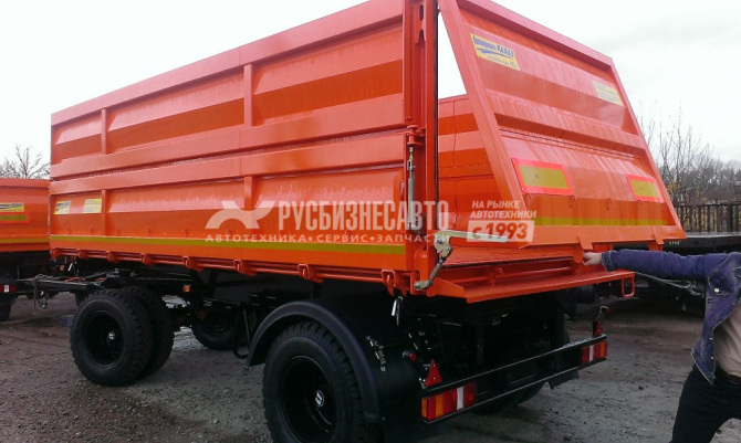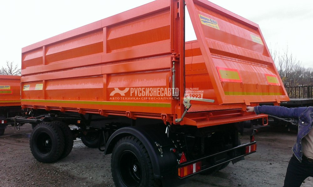 Кол.осей - 2; Груз-ть - 10,7 т; Тип разгруз. - З-х стор. разгрузка; V платф. - 20 м3;  Шины - 9.0R20; Подвеска - рессорная; Оси- Плант, Дышло треугольное, два положения -  ССУ 670-970, ТСУ-50ММ ГОСТ, задний откидной борт