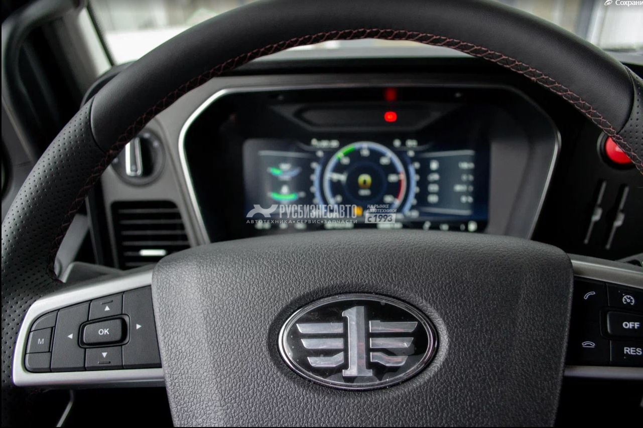 - Высокая кабина J7 без заднего окна с плоским полом, зеркалами заднего вида с электроприводом и электрообогревом, четырехточечная пневматическая подвеска кабины. - Двигатель собственной разработки компании FAW, 550 л.с., система Common Rail с электронным управлением. - Автоматическая коробка ZF Traxon ZF12TX2621TD с ретардером. 12 передач вперёд и 2 назад. - Электронная приборная панель, 8-дюймовый сенсорный автомобильный терминал, совместимый с Beidou, электрические стеклоподъемники, кондиционер. - Grammer - комфортабельное сиденье для водителя с пневмоподвеской, подлокотниками и функциями вентиляции и обогрева. - Рулевой механизм TRW. - Тормозная система WABCO. - Задняя пневматическая 4-х подушечная подвеска. - Передние и задние дисковые тормоза, FCW (предупреждение о лобовом столкновении), LDW (контроль движения в полосе), контроль давления и температуры в шинах. - Высота ССУ 950 мм. для работы тягача с автовозами, мега и пр. - Полная масса 18000 кг - ССУ HYVA/JOST 1150 мм, нагрузка на ССУ 10000 кг