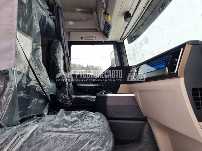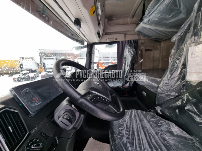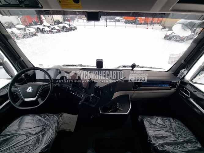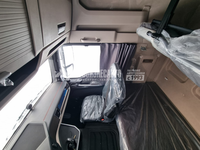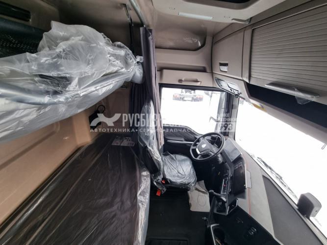 Кабина C7H-E, Передаточное число главной передачи 3.08 Два спальных места. Сиденье с пневмоприводом,с вентиляционным обогревом и подлокотниками Функция Bluetooth, Электрический стеклоподъемник LED Светодиодные фары с автокорректором + дневные ходовые огни, центральный замок двери с устройством дистанционного управления, автоматический кондиционер Электрический подъемник кабины 7-дюймовый цветной дисплей 12,3-дюймовый центральный экран управления 360-градусное объемное видеонаблюдение Инверторный блок питания 220В-1000Вт Автомобильный холодильник Автономный обогреватель кабины (4kW) Круиз-контроль Люк на крыше с механическим управлением Зеркало заднего вида с электрическим обогревом Двигатель MC13.48-50 Коробка передач 12TX2621TD + NH/4C Топливные баки 600+400 л. Комплектация тягача с АДР: - проблесковые маяки (лампочки, не диоды), - проводка во взрывозащищённой обмотке, - кнопка отключения массы, дублирующая кнопка в кабине, - электронный ограничитель максимальной скорости 89 км/ч