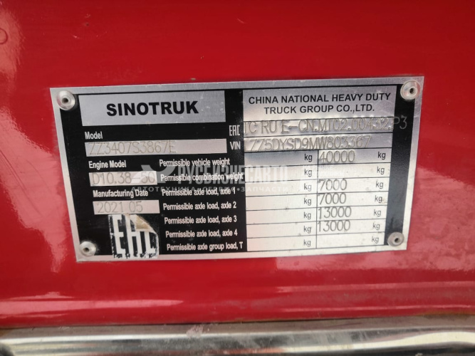 Технические характеристики Самосвал HOWO ZZ3407S3867E (8x4) б/у (2021 г. 73810 км)(3367)
