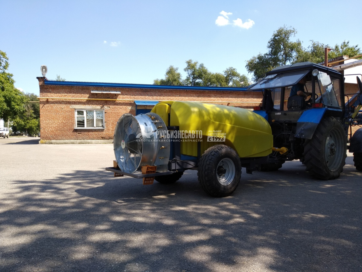Опрыскиватель садовый полуприцепной. Емкость 2000 л. - пластик. Радиальная вентиляторная группа. Двухпозиционные отсекатели. Вентилятор 815 мм, трехступенчатая регулировка угла атаки лопастей, двухступенчатый редуктор.