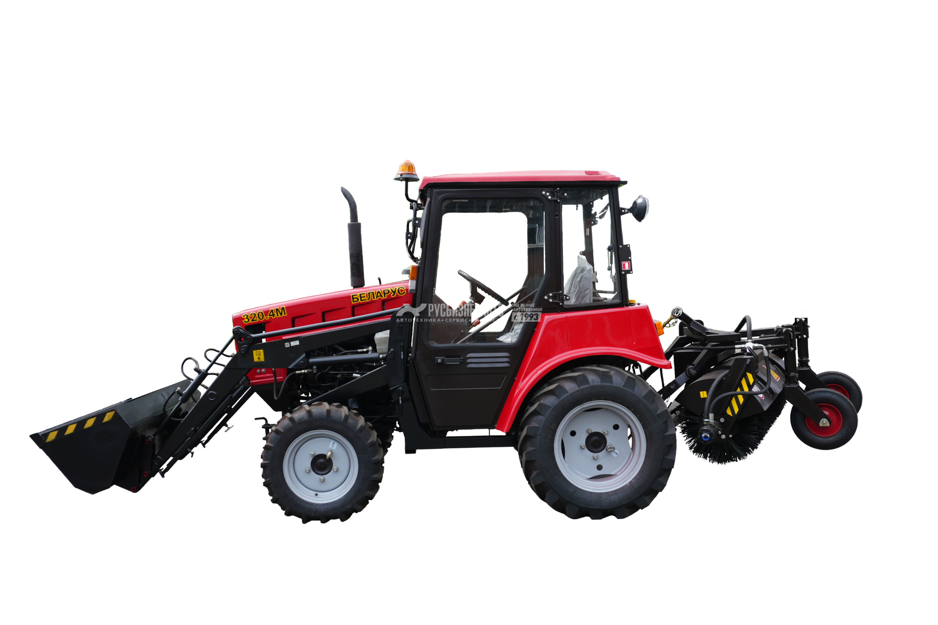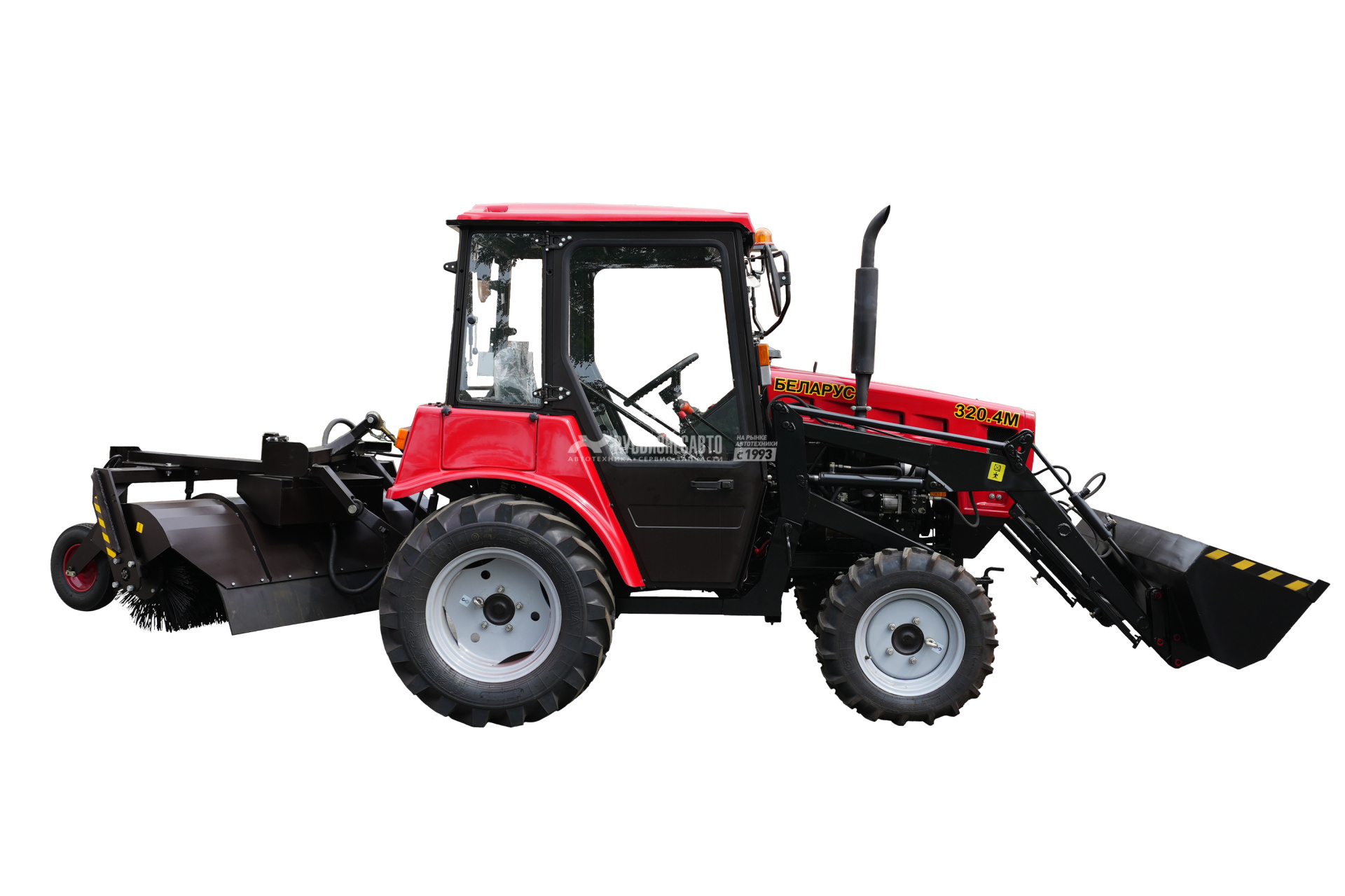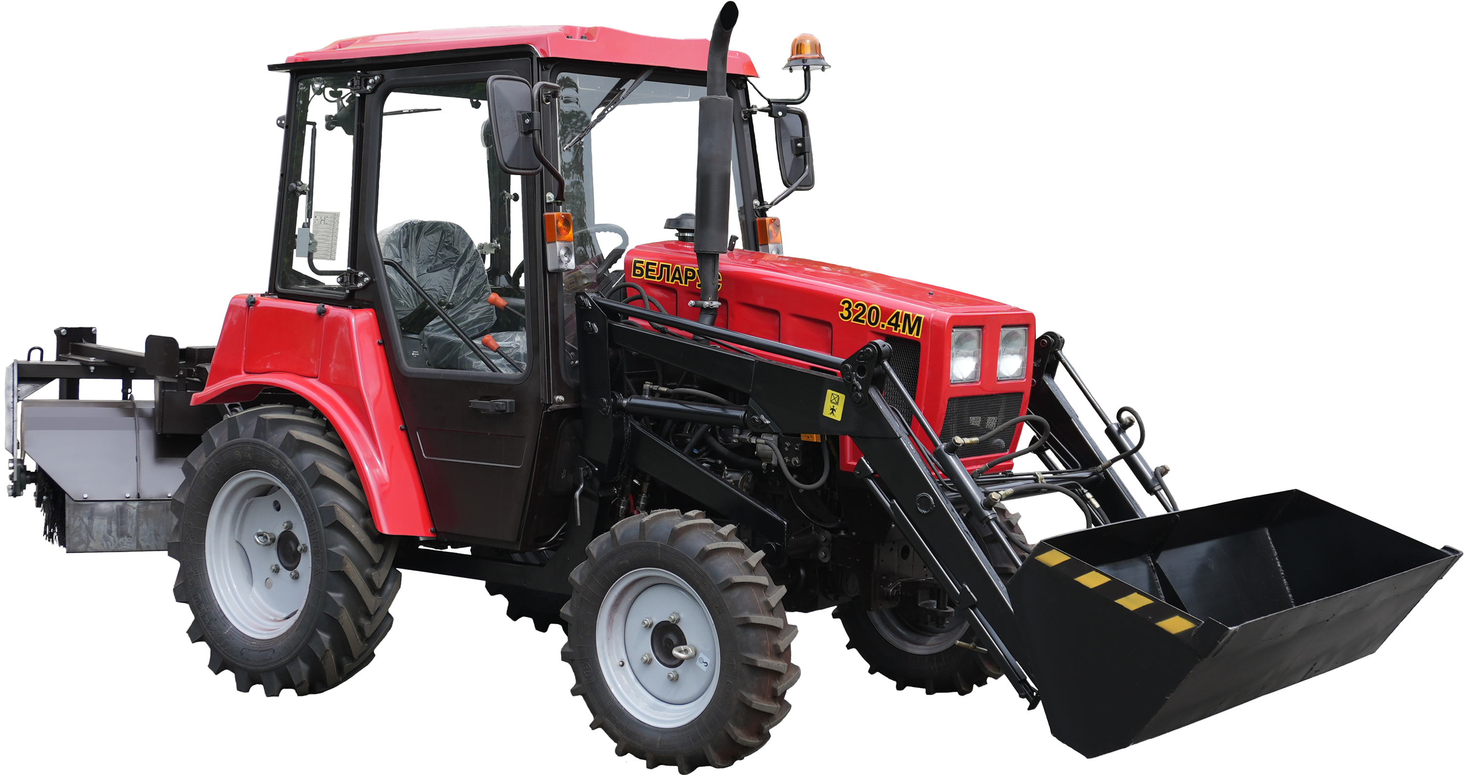 Машина состоит из базового трактора БЕЛАРУС 320.4 и закреплённых на нём погрузочного и щеточного оборудования. Оснащена надежным двигателем «ММЗ» 3LD ,